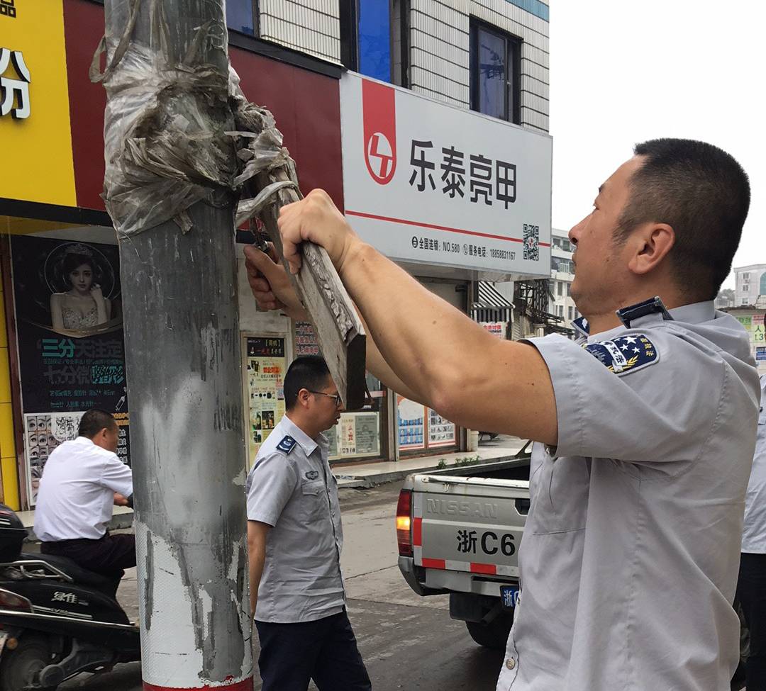 近日,龙港镇继“小广告”专项整治大会后,职能部门、社区开展联动,重拳出击对城区小广告进行大整治。龙港镇按照市、县小广告整治“四个一律”,即对影响市容市貌的“小广告”一律清理,对违法发布“小广告”行为一律重罚,对内容违法的“小广告”一律侦办,对违法“小广告”联系电话一律停机的要求,对全镇建成区范围内所有主次干道、背街小巷、沿街门店、居民小区及城中村,开展“小广告”专项集中整治。