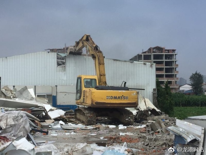 13日,在新兰村,本网小编看到,随着挖掘机双臂的不断挥舞,眼前的这片钢混结构的村集体和个人违法建筑被依法拆除,从而打响了龙港镇“整村拆违”第一枪。