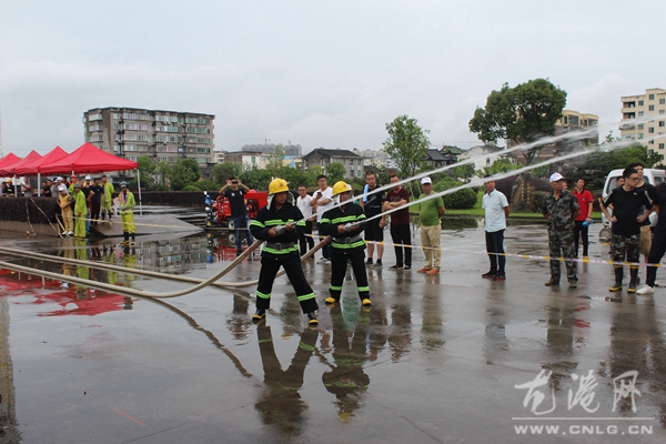 活动现场标有起点线和重点线,每队六人听到口令后要完成分水器、吸水管、滤水器、水枪等各设备连接,直到水枪出水后射中靶位后计算成绩,完成用时长短为依据,排定名次。最终,薛家桥村义务消防队技压各队,勇夺第一名;黄楼下村、鉴后西村分获二、三名。