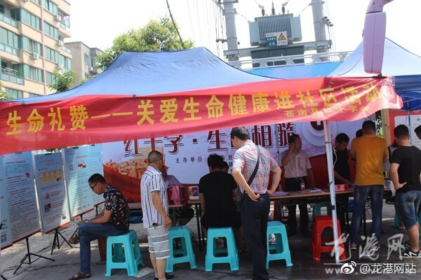 龙港镇红十字会工作人员在现场向过往居民讲解宣传无偿献血和骨髓造血干细胞捐献知识,引导市民到采血车上参加无偿献血与志愿捐献骨髓造血干细胞标本采集活动,呼吁更多的社会爱心人士关注并参与这一公益事业,使需要救助的患者及时得到帮助,重获新生!