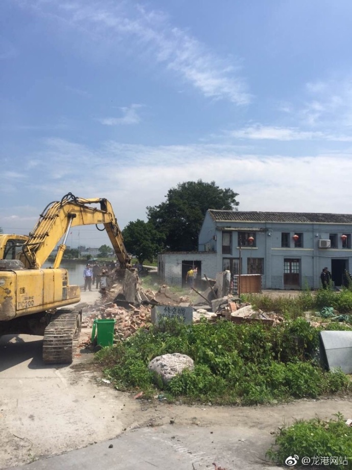 该局副局长缪克权告诉龙港网小编说:今天出动了城西、城北、城中、湖前、舥艚中队100余名,安保和民工80余人,依法拆除违法建筑35宗,拆除违法建筑面积9200平方米。接下来还会不折不扣地将该村违建全部拆除。争取在7月中旬全部完成。