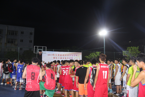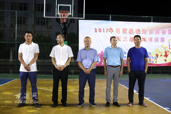龙港网7月17日讯:为了提高青年的身心素质,增强团队精神和集体凝聚力,展现青年人积极向上的风貌,昨天晚上,2017年苍南县运动休闲体育年暨第三届篮球锦标赛在龙港实验中心外的篮球场举行了开幕仪式。县体育局副局长黄瑞聘、镇委副书记金珍敏出席开幕仪式。