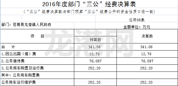 2016年度龙港镇部门决算包括:本级决算及所属龙港镇本级和个15个大部门、13个社区决算数据汇总数,具体如下:(列表)