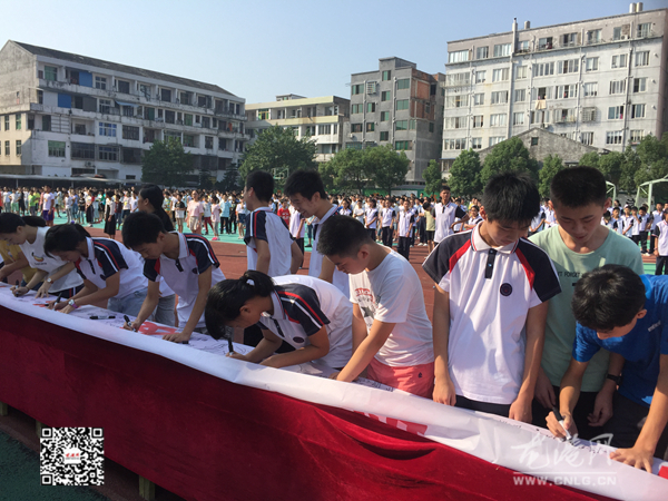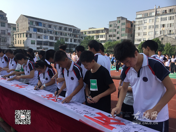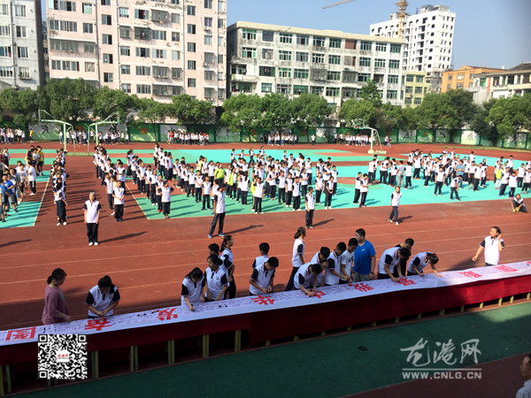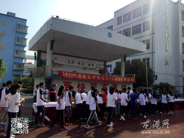 当天,龙港五中近800名学生开展纪念“九一八”事变主题教育活动,全体老师及学生参加宣誓并在“勿忘国耻,爱我中华,奋发图强、振兴中华”的条幅上签名,激发学生的民族自尊、自信、自强精神,使全体学生接受了一次生动的爱国主义教育。