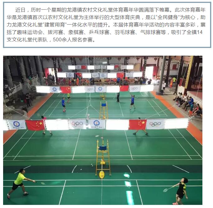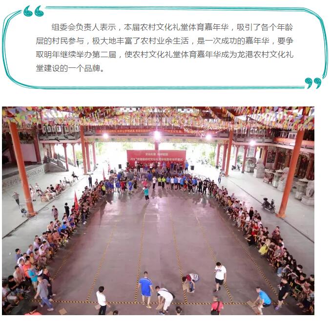 [导读]近日,历时一个星期的龙港镇农村文化礼堂体育嘉年华圆满落下帷幕。此次体育嘉年华是龙港镇首次以农村文化礼堂为主体举行的大型体育庆典,是以“全民健身”为核心,助力龙港文化礼堂“建管用育”一体化水平的提升。
