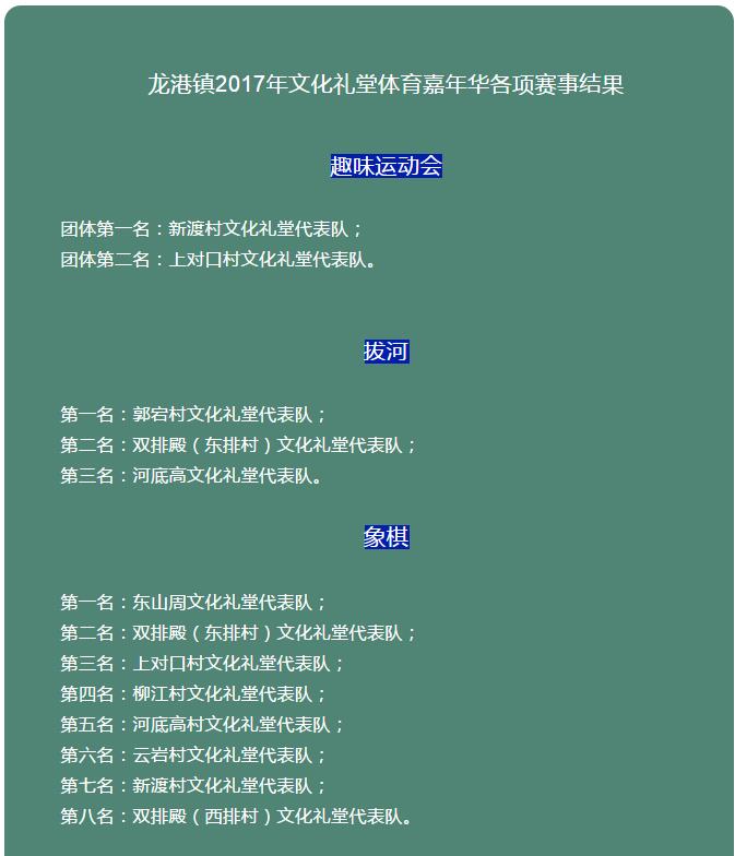 首届龙港镇农村文化礼堂体育嘉年华圆满落幕 丨 附各单项比赛成绩