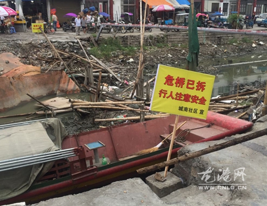 9月22日,小编在龙港下埠池浦河第三菜场看到,河上的那座竹桥已被拆除,两边立起两块提示牌,提醒大家注意安全。