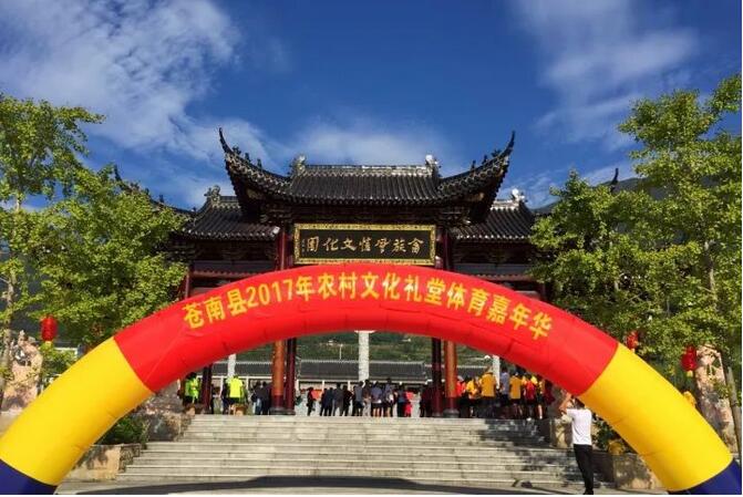 为喜迎党的十九大胜利召开,推进农村文化体育事业大发展大繁荣,今天上午,苍南县2017年农村文化礼堂体育嘉年华活动开幕式在美丽的岱岭乡富源村盛大举行。县委常委、宣传部长林森森,县委宣传部常务副部长王子健,县委宣传部副部长丁宗阳等出席开幕式。