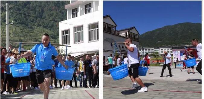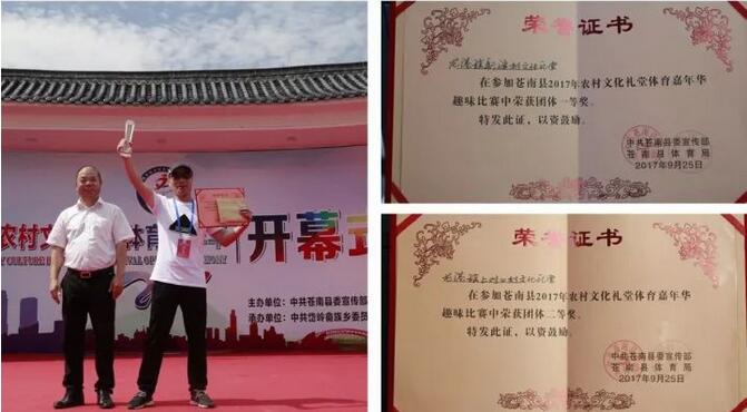 在今天趣味运动比赛项目中,龙港镇代表队表现出色,一举夺得多项比赛项目的第一,实现比赛开门红。新渡村文化礼堂代表队在“背媳妇”和“夹弹珠”两项比赛中拔得头筹后,又在“浑水摸鱼”和“三十米挑粮”的比赛中夺取了亚军。最后龙港镇新渡村文化礼堂代表队和上对口村文化礼堂代表队分别以团体总分第一、第二的优异成绩结束了今天的所有趣味比赛项目。