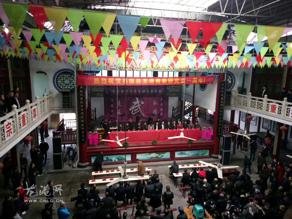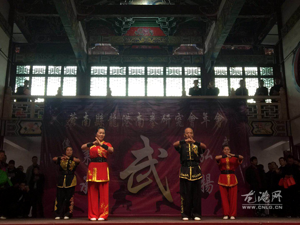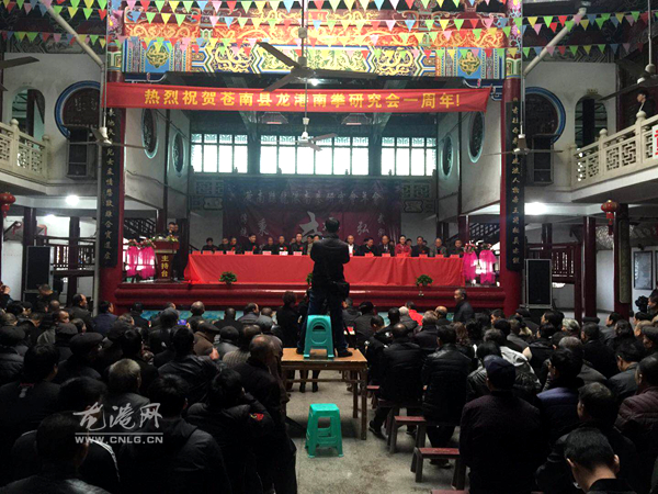 龙港网11月27日讯:昨天,龙港南拳研究会成立周年庆在海城社区缪氏祠堂内举行。来自温州各地的南拳好手纷纷献技,为研究会成立周年庆助兴。