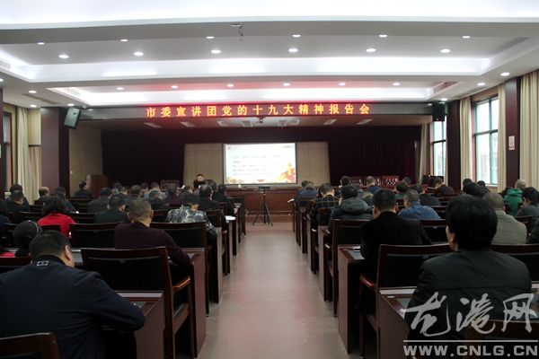 龙港网11月29日讯:为学习宣传贯彻党的十九大精神,进一步推动掀起学习党的十九大精神热潮,市委宣讲团走进龙港深入宣讲党的十九大精神,温州市住房和城乡建设委员会主任周守权主讲,县委常委、镇委书记陈为来主持会议。镇三套班子领导、各部门中层正职及以上人员、各社区书记、主任、组织委员、宣传委员等参加会议。