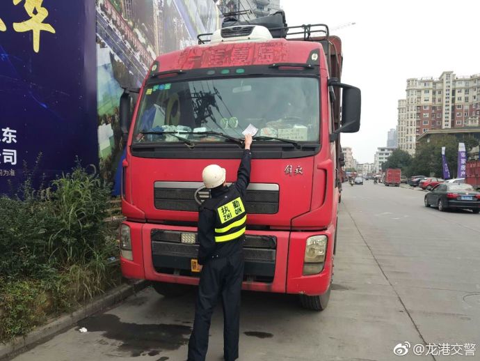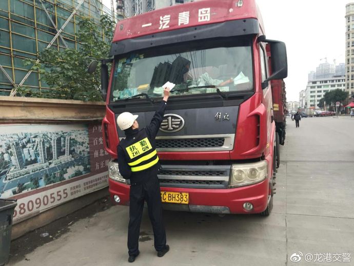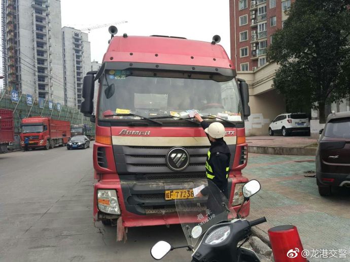 为确保城区道路交通安全畅通,龙港交警队组织警力加强城区大货车违停抄告管理,下图为交警在华电路、金钗街等道路管理大货车违停。
