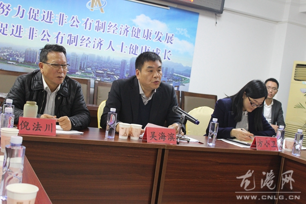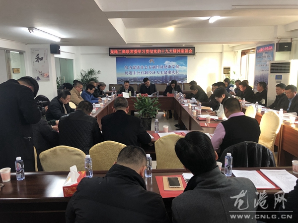 12月19日龙港镇召开工商联十九大精神学习座谈会。龙港工商联主席、龙港总商会会长倪法川主持会议,县委统战部副部长、县工商联党组书记吴海滨,镇统战委员方小卫、龙港总商会理事会成员参加会议。