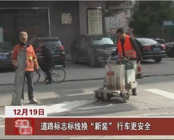斑马线、分道线、指示箭头作为交通标志标线,可以保障道路交通安全和顺畅。近日,道路维护人员对龙港大道与西三街等道路不清晰的交通标志标线进行修补。