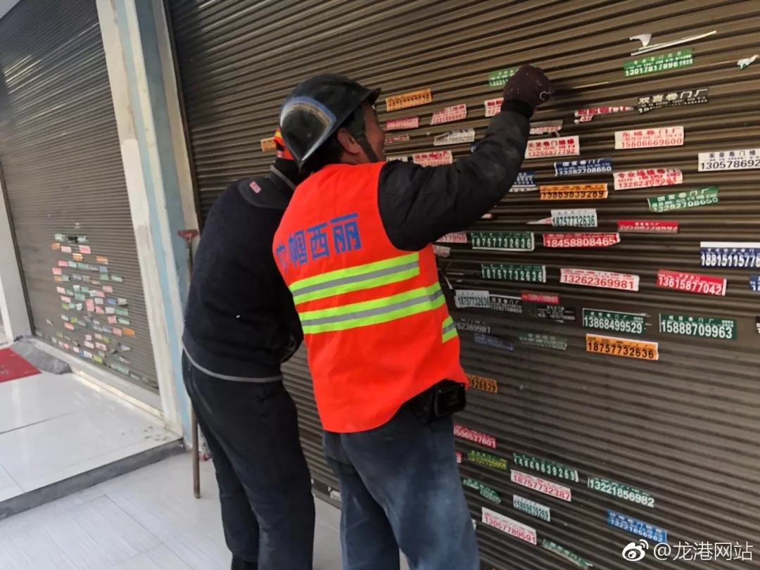 龙港网讯:为做好全国文明镇复评和浙江省卫生镇复查工作,改善群众的生活环境,提升龙港城区整体形象, 今天,龙港网小编实地走访了城西保洁巾帼西丽,看看、听听他们是如何开展清除“牛皮癣”专项整治行动的,对辖区店面铝合金卷拉门、各墙体、楼梯和张贴、喷涂的小广告进行统一清理,亮化美化人居环境。