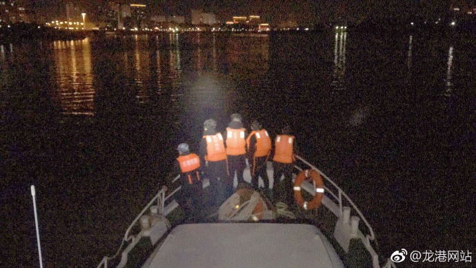 接到指令后,总值班长、执行主任王昌琦立即带领第一批8名东海民防值班队员,分别乘坐救援车和救援艇赶往事发现场。第二批温州市志愿者应急救援支队东海救援大队和苍南县红十字东海救㧞队15名队员陆续赶到,分别出动2辆救援车和1艘东海民防166应急指挥艇赶往事发江域。温州太平慈善灾害救助基地工作人员立即启动应急预案,提供足够油料和救援装备做好后勤保障工作。在鳌江海事处海巡执法艇统一部署下,东海民防队员分二组由新龙港大桥往钱仓方向展开全方位搜寻。第一组3名东海队员在搜寻至500米处江上发现一件黑色大衣,将其捞起,发现衣袋中有一部小米手机,于是向东海民防基地总部报告此情。东海队员继续分左右沿江展开搜寻,不放过任何一个盲区和疑点;岸上的东海队员也分二拨人马沿岸步行展开搜寻。苍南县应急救援联盟成员单位-海川应急救援中心、博德应急救援中心也赶来支援,经过二个小时搜寻无果,由于潮水已开始退潮,天气逐渐变黑,搜寻船艇撤回东海民防基地休整。