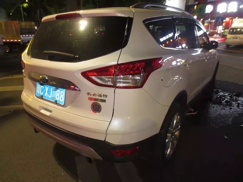 更要命的是,前方20米处有一辆粤CXJ×88号白色福特翼虎小车从江湾一路东往西方向行驶到路口,飞车人已经无法自控,眼睁睁随着摩托车狠狠撞向白色翼虎的右前轮。飞车人头部受到重创,血流不止......