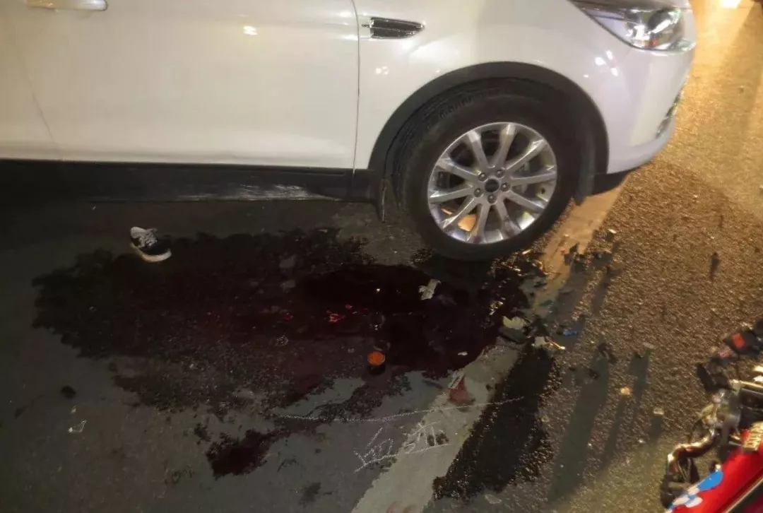 交警在事故现场看到,灰白两辆翼虎小车停在路口处,摩托车横在路中央严重变形,在地面上留下一条十多米的刮痕。灰色翼虎左侧倒后镜掉落在地。白色翼虎右侧车身被刮花,满地鲜血。
