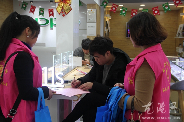 龙港网1月18日讯:为了提高广大居民文明交通意识,在辖区营造文明礼让斑马线的和谐交通氛围。日前,龙港妇联、宣统局、关工委联合组织城北、城南、沿江和湖前公益园等四家单位妇联志愿者在辖区内开展“礼让斑马线”为主题的宣传活动。