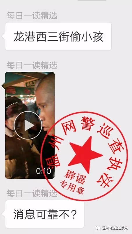今日有网民在微信群发言称龙港西三街疑似有人偷小孩,并附上相关视频。