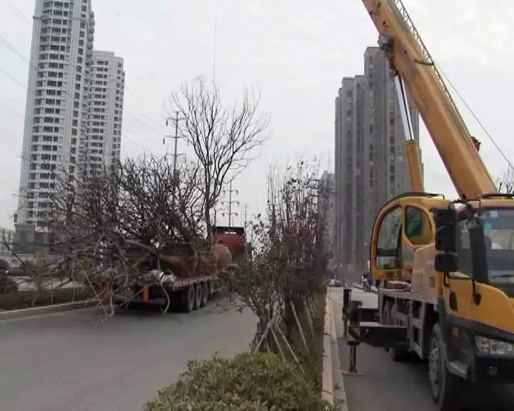 虽然天气寒冷,但在世纪大道两侧绿化建设工地上却是一片火热的建设场景,各类施工机器机声隆隆,工人们则一丝不苟地整理树枝。