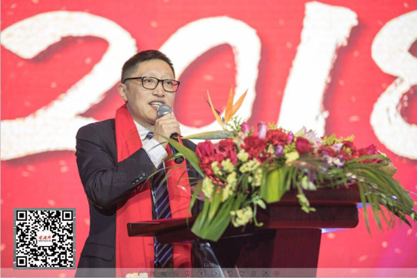 夜幕降临,华灯初上。晚上18:00,年会在主持人一段热情洋溢的开场白中拉开了帷幕。邓总率先上台发言,对员工们一年来的努力给予肯定与感谢,回顾2017年的点点滴滴,展望2018年的美好明天,精彩的致辞博得了台下员工领导们的阵阵掌声。