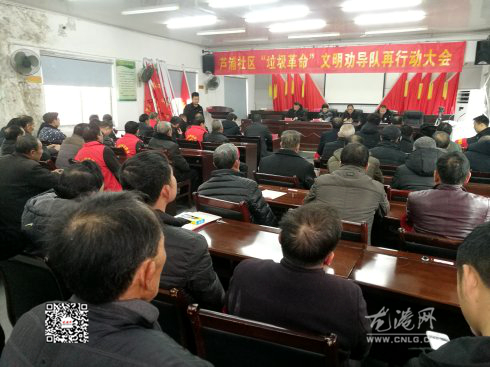 龙港网2月3日讯:昨天下午在芦浦社区启动“垃圾革命”文明劝导队与“垃圾革命”巾帼志愿者再行动大会,来自社区机关和14个村的文明劝导队和巾帼志愿者服务队,各十五支共30支队,200多队员的齐聚社区。这是一场文明礼仪之树与巾帼志愿之花的汇聚,这是一场文明劝导队与巾帼志愿服务队的大整编、大检阅、大巡礼,这是一场铸就芦浦文明劝导之师和巾帼志愿娘子军的再行动。社区书记杨立人、主任应仲航、分管委员徐少敢参加,龙港镇整治办彭瑞芬主任应邀出席并做指导讲话。