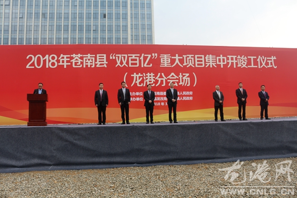 今天上午,2018年苍南县举行“双百亿”重大项目集中开竣工龙港分会场活动,县政协主席陈国苗致辞。县委常委、镇委书记陈为来主持开竣工仪式;县、镇领导王忠秀、陈显宏、李孝取、朱文胜、林志远参加活动。