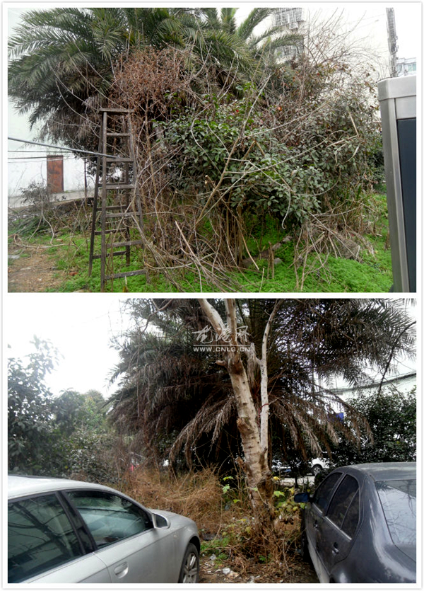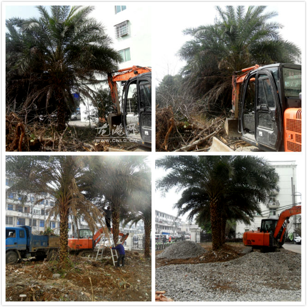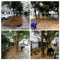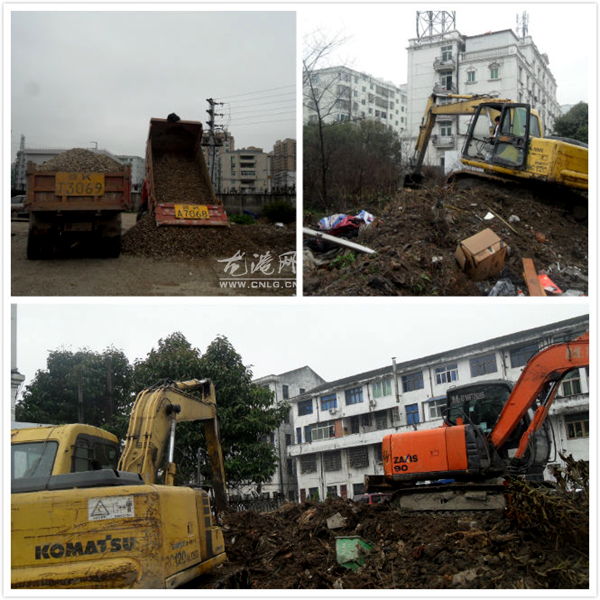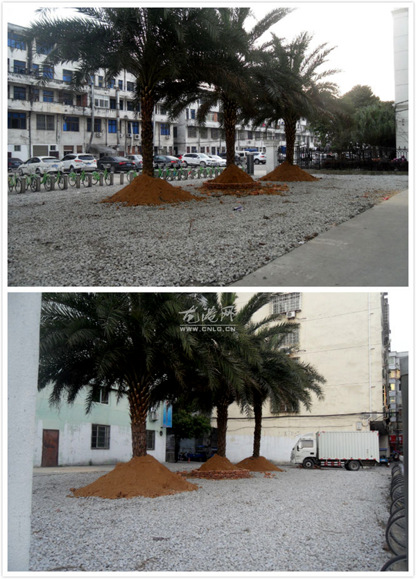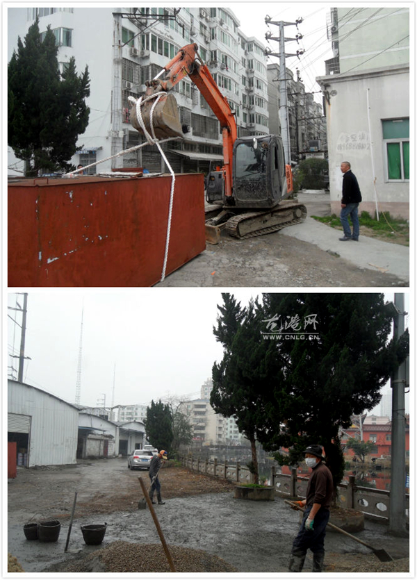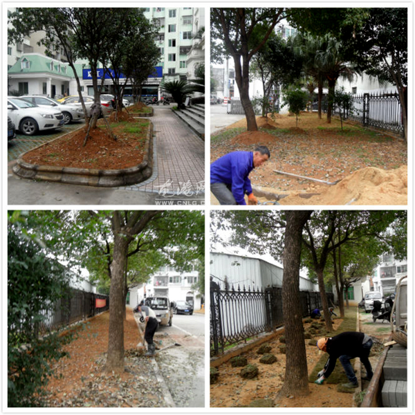 沿江社区对大门附近的垃圾点进行清理,在道路两侧增植苗木,实施绿化美化,并对路面进行硬化,以改善每逢雨天道路泥泞不堪的问题。