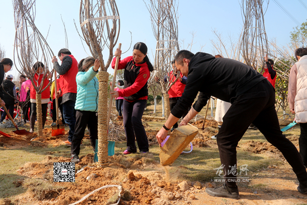 春来正是造林时。明天是3月12日植树节。今天下午,龙港镇组织100多名团员青年及巾帼志愿者在云岩社区中对口村开展义务植树活动,为植树造林工作奉献青春力量。县妇联主席周碧素参加活动。