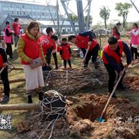 伴随着灿烂阳光,下午14时,由龙港团员青年及各社区、村居的巾帼志愿者组成的植树小分队们早早来到中对口村集合。在工作人员处领取种植工具后,大家三五一组,或挖坑,或扶树,现场一片热火朝天。通过一个多小时的努力,200多棵樱花树苗在中对口村共青林、巾帼林种下。看着荒地上种好的一抹抹新绿,泛着春意和生机,义务植树者们都露出了自豪的微笑。