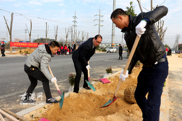 阳春三月,冬天的寒意还未褪尽,春天带着绿色的气息向我们走来,处处春意盎然。在松涛路上人声鼎沸,一派热火朝天的劳动景象。县委常委、镇委书记陈为来,镇长陈显宏,镇人大主席李孝取等领导到达植树点后,纷纷拿起铁锹投入到紧张的义务植树活动中。