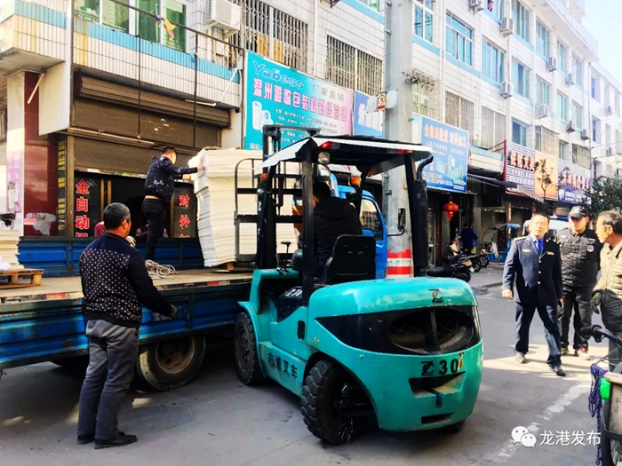 据了解,龙港综合执法局组织10多名执法人员,出动铲车一辆、大货车多辆,两天内共发放整改通知书68份,对占道堆放的物品作为违章证据予以先行登记暂扣,并依法立案处理。