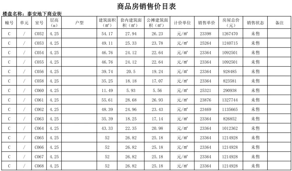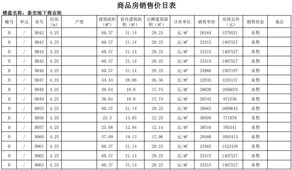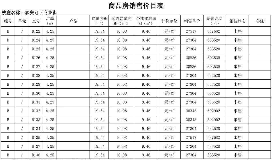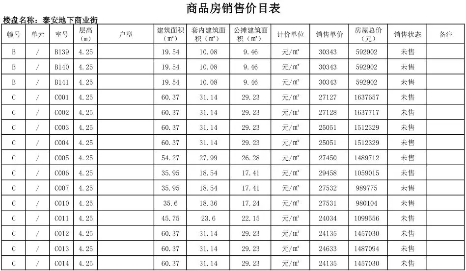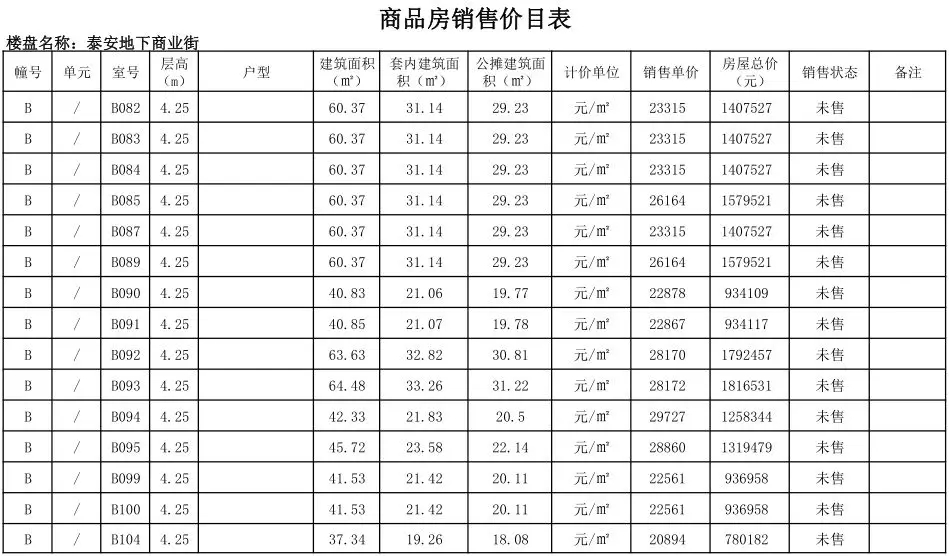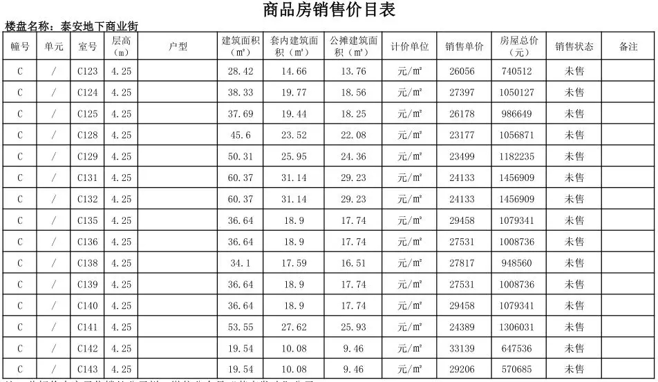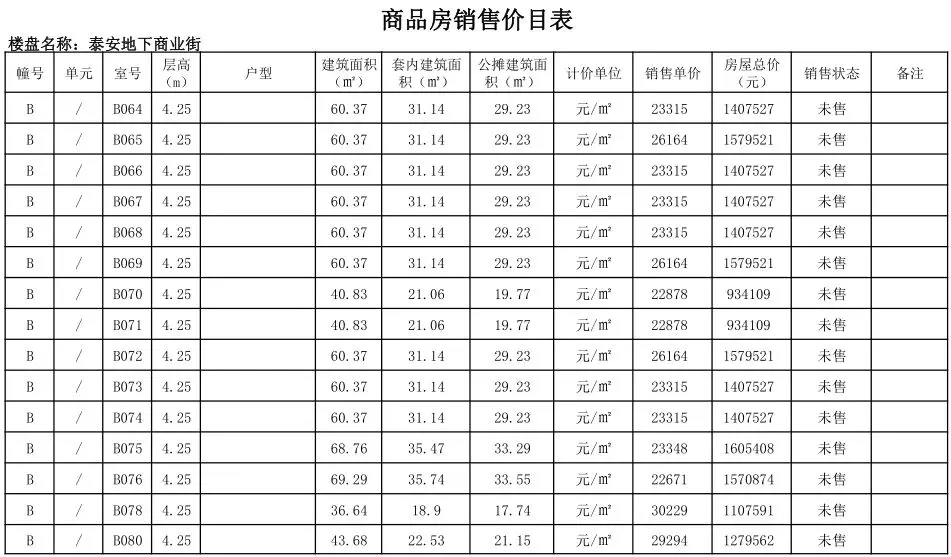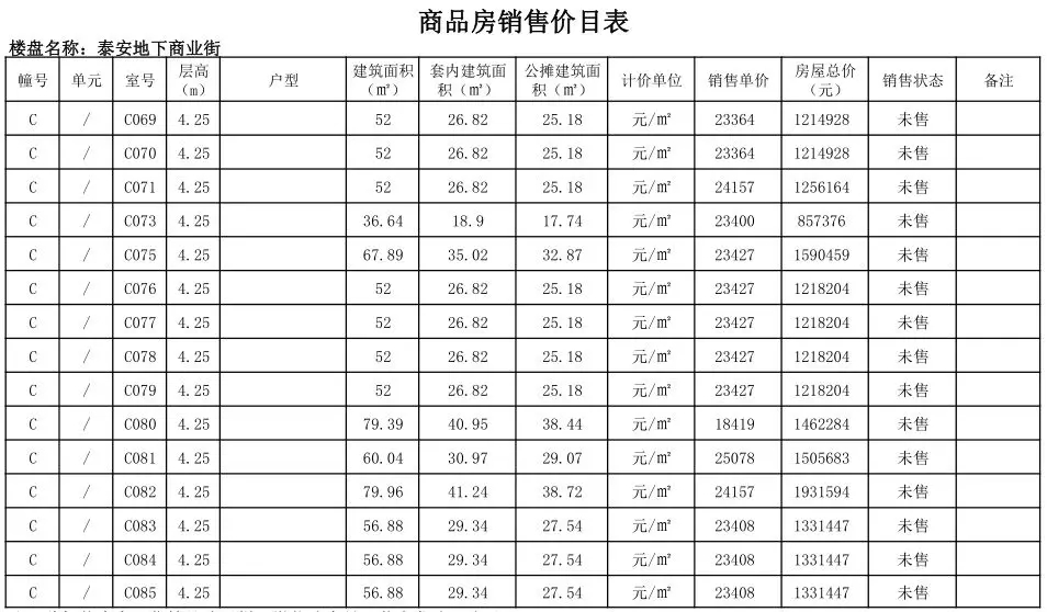 根据国家发改委《商品房销售明码标价规定》(发改价格〔2011〕548号)和《浙江省商品房销售明码标价实施细则》的要求,现对龙港泰安地下商业街商铺售价予以公示。