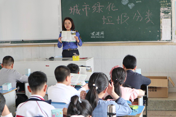 在五小,执法局工作人员还给小学生们上了一节课堂,向小学生们仔细讲解了《条例》和垃圾分类的知识。在现场,还开展知识问答和发放宣传单等方式与孩子们进行现场互动,提高孩子们的参与热情。用“小手拉大手”的宣传方式,培养学生树立“垃圾分类要从小做起”的理念,促进家长积极参与垃圾分类行动的热情,养成垃圾分类投放的良好习惯。