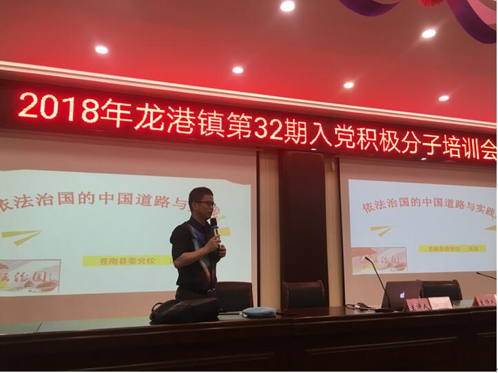 此次培训为期半天,时间虽短,但内容丰富。县委党校老师洪涛以“依法治国的中国道路和实践”为题,对法治社会的内涵、本质、要求和实践做了深入浅出的讲解。县委组织部组织科副科长叶信汉从党的光辉历程、中国共产党的性质和根本宗旨、党员的条件、权利和义务、如何以实际行动争取早日入党、十九大对党员提出的新要求等五个方面对党的知识进行全方位的授课。