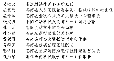 4月27日,第六届苍南县“十大杰出青年”评审会在县行政中心举行,吕心为等10人当选为第六届苍南县“十大杰出青年”,王春钗等10人当选为第六届苍南县“十大优秀青年”。