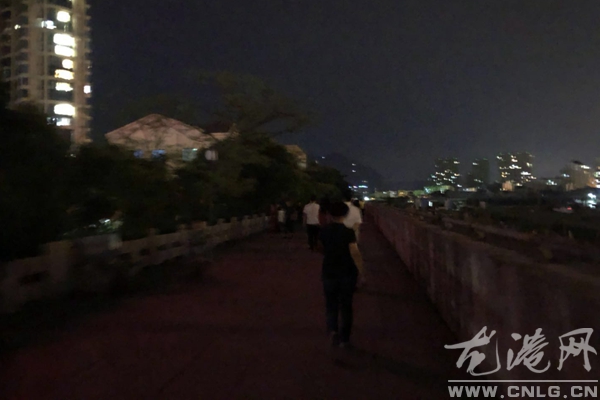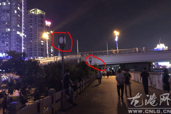 昨天晚上,小编来到群众反映的所在地,发现龙港外滩老年大学段至金河广场段沿路路灯均呈关闭状态。天气逐渐转热,外滩运动、散步、遛狗的人逐渐增多,路面照明不亮,容易发生踩踏事件。