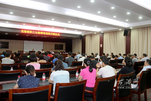 昨天晚上,龙港镇职工太极拳培训班正式开班,县总工会副主席项延宝、镇总工会主席吴春晖等领导出席开班仪式。