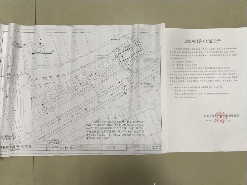 龙港镇湖前水闸西桥村西桥村杨文村等9户12间拆迁安置,位于龙港镇环城南路以北,要求办理规划用地许可证。根据《中华人民共和国行政许可法》、《中华人民共和国城乡规划法》、《浙江省城乡规划条例》,本局对该项目作如下公示:(规划总平面图如图所示)