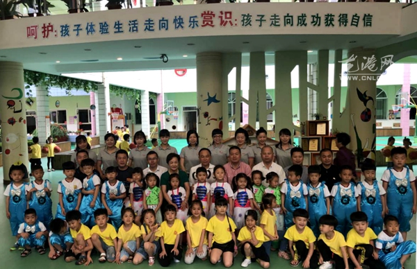 陈为来一行,首先来到小龙人幼儿园。走进教室,坐在孩子们身边,饶有兴致地看他们制作画框并与部分幼儿一起合影留念。陈为来说,希望小朋友好好学习,乐观向上。