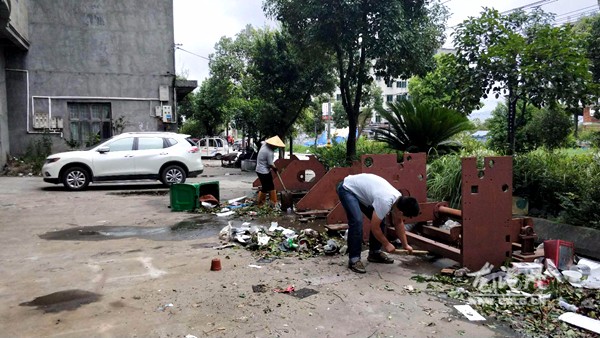 在湖前社区,各村村两委干部、党员志愿者活跃在各村的大街小巷之中,对村内的残枝断叶、雨后积存的垃圾等进行全面清扫,争取在最短时间内恢复安全、干净、卫生的村居环境。截至12日下午,湖前社区各村共出动人员300余人、清理垃圾80余吨,各村主要道路恢复以往干净整洁,有效保障了灾后群众生产生活。