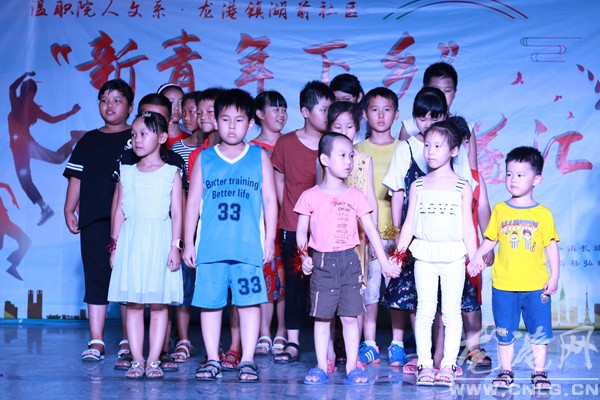 此次活动是温职院爱心支教队的成员们通过自编自导自演,向村民们展示暑期爱心支教成果。演出在歌曲《哎呀哎呀》中拉开了序幕,随后,诗歌朗诵、健美操、太极、大合唱等节目轮番上演,精彩纷呈,赢得在场观众的阵阵掌声。期间,来自彩虹课堂的孩子们为大家带来的环保服装走秀和歌曲串烧给大家留下了深刻的印象,大家被孩子们这段时间的成长深深的感动。在萝卜蹲的游戏环节中,孩子们表现得非常出色,在欢声笑语中把晚会推向了高潮。