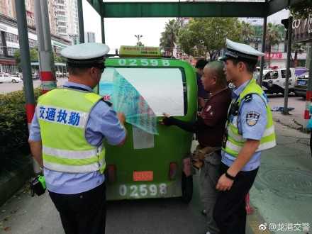 “微的”载着客人出现在龙港城区的大街小巷,同时承载着龙港流动的文明窗口。但近期“微的”车上出现五花八门的广告商标,影响市容市貌,为遏制这一乱象,龙港交警队出动警力对这一乱象进行整治,查处一起,清理一起。