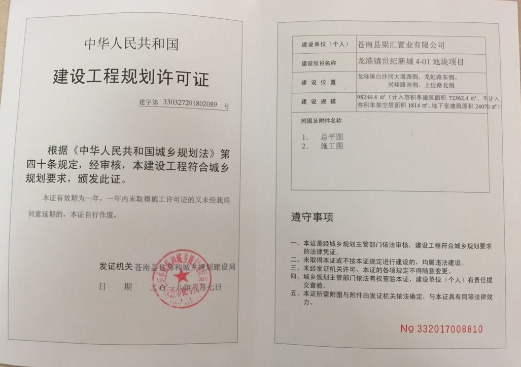 苍南县梁汇置业有限公司建设的龙港镇世纪
