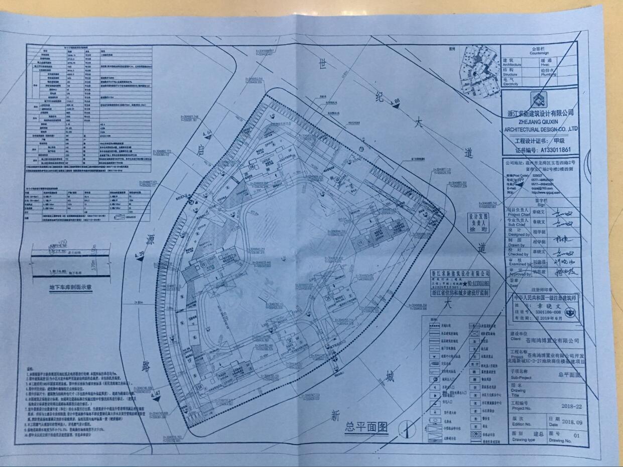 苍南鸿博置业有限公司开发龙港新城XC-2-27地块商住楼基建项目,土地座落在龙港新城世纪大道以西、新城大道以北,现进行建设工程规划许可批前公示,该项目作如下公示:(附总平面图如图所示)