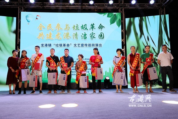 “和谐乡村中对口,我的爱洒在龙港上,人杰地灵,潮头敢闯,凝聚起力量,打造梦中的天堂……”本场“垃圾革命”巡回演出在《美丽乡村中对口》村歌中拉开了帷幕。