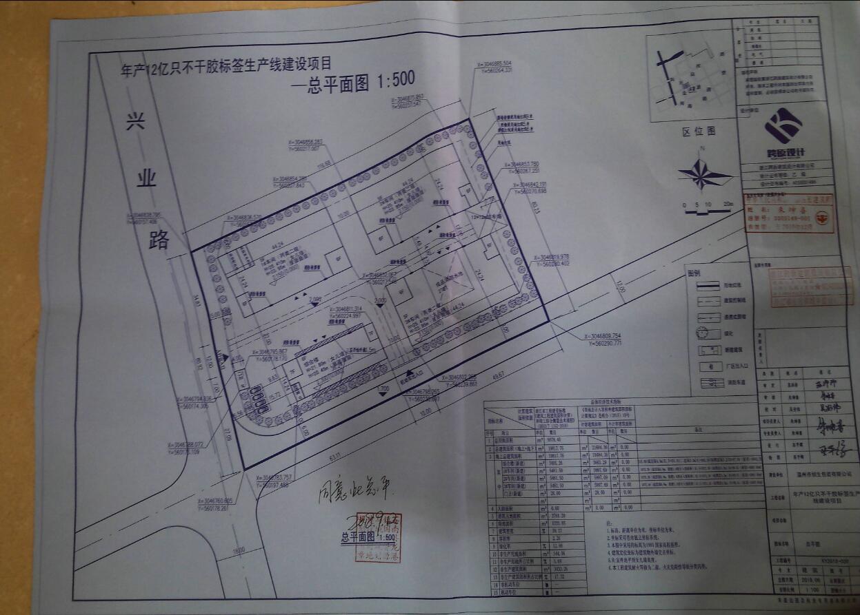 温州市恒生包装有限公司建设的年产12亿只不干胶标签生产线建设项目,土地座落在龙港新城兴业路以东的XC-A03-2地块(XC-A30地块内),现进行建设工程规划许可批前公示,该项目作如下公示:(附总平面图如图所示)