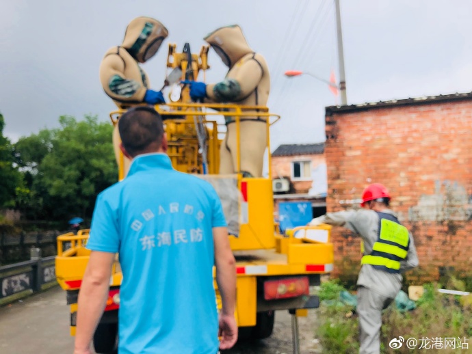 现场指挥员立即向东海民防总部战备值班室报告,请求龙港镇应急联动群成员单位龙新供电所协助配合,需要采取临时停电措施,出动升降车来实施摘除作业。