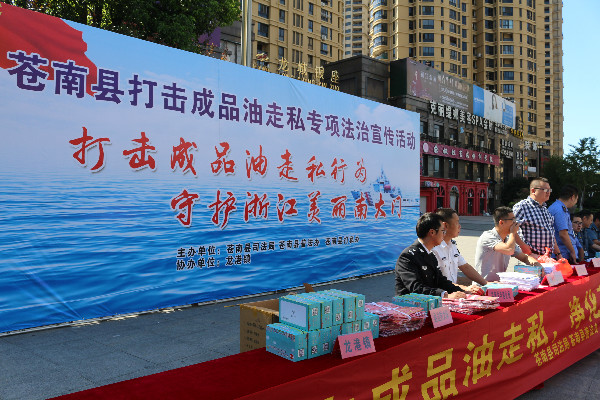 打击成品油走私违法犯罪行为是我县特别是沿海乡镇一项长期而艰巨的反走私工作任务。为贯彻落实省、市有关打击成品油走私工作会议精神,充分发挥法制宣传教育在打击成品油走私工作中的作用,进一步推动全县打击成品油走私工作取得新成效,今天上午,在龙港财富广场开展打击成品油走私法治宣传教育活动。